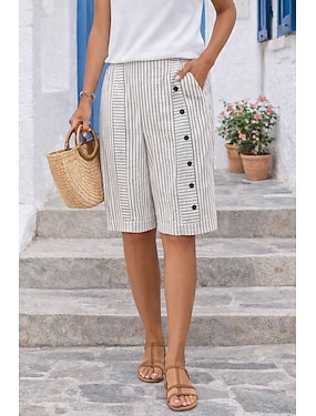Mulheres Calças Capri Linho de algodão sintético Calção Shorts de verão Casual Diário Comprimento do joelho Listrado Bolsos laterais Respirabilidade Confortável Sem Elasticidade Para Noite Final de