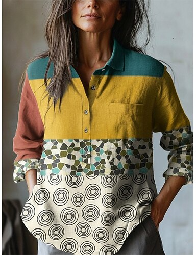 Mulheres Blusa Imprimir Gráfico Listrado Férias Diário à moda Manga Longa Colarinho de Camisa Tops regulares Diário Ao ar livre Feriado Amarelo Vermelho Verão Primavera Outono