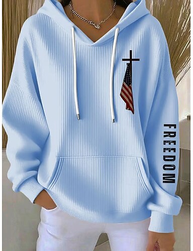 Mulheres Pulôver Moletom Com Capuz Gráfico Letra Casual Manga Longa Com Capuz Tops regulares Casual Dia a Dia Esportes Azul Preto Branco Vermelho Cinzento Primavera Outono