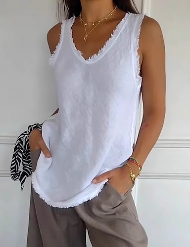 Mulheres Camisola Regata Côr Sólida Diário Casual Sem Manga Decote V Tops regulares Diário Preto Branco Amarelo Rosa Azul Marinha Verão