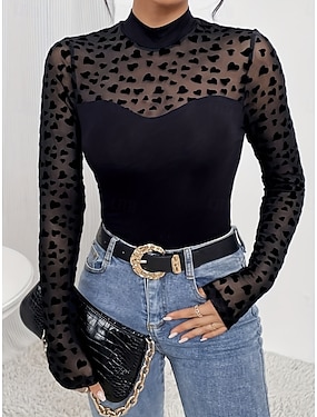 Mulheres Camisa Social Blusa Blusas de manga comprida Com Transparência Tecido à moda Clássico Moderno Manga Longa Gola Alta Tops regulares Diário Festa Feriado Preto Verão Primavera