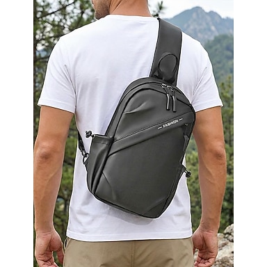 Bolsa tiracolo masculina à prova d'água e anti-riscos com porta de carregamento USB - mochila de viagem casual transversal para atividades ao ar livre, deslocamento e uso diário