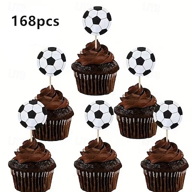 Conjunto de 168 peças de decorações para cupcakes com tema de futebol, enfeites esportivos para cupcakes de futebol, decorações para bolos de batizado, perfeitos para a Copa do Mundo e festas de
