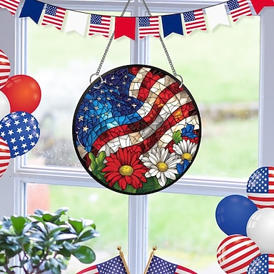 decoração de parede para o Dia da Independência dos EUA, corrente de ferro, acrílico, pingente para varanda.