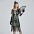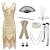 Conjunto Loucos anos 20 Anos 20 Até os Joelhos Vestido melindroso Roupa Conjunto de acessórios com acessórios Sem Mangas O Grande Gatsby Menina melindrosa Convidado do casamento Paetês Franjas Decote