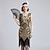 Loucos anos 20 Anos 20 Maxi Até o Tornozelo Vestidos Festa de Casamento Despedida de solteiro Normal Mangas curtas O Grande Gatsby charleston Convidado do casamento Paetês Geométrica Sereia Decote V