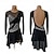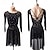 Vestido elegante preto para dança latina feminina - mangas compridas em tule, gola alta, corpete bordado com franjas. &vestido de rumba salsa tango com detalhes intrincados