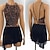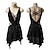 Vestido de dança de salão feminino, preto, com cadarço, malha, ilusão frontal, elegante, tango, rumba, valsa, competição, vestido de apresentação