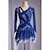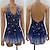 Vestido de dança de salão feminino com bordado floral em camadas de malha elegante para competição de valsa, tango e foxtrote – azul marinho &azul claro