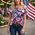 250º Aniversário EUA Retro Vintage Anos 80 Japonesa/Curta Assimétrico Mangas curtas Fantasia Mulheres 4 de julho Dia da Independência Adulto Camiseta