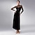 Vestido de dança de salão feminino, malha de veludo, manga longa, valsa, tango, competição latina, vestido de performance, elegante, preto