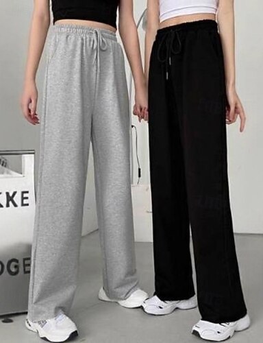 Mulheres Atrevido chinês Calças de jogging Roupa de rua Casual Comprimento total Cintura Média Tecido Com Cordão Bolsos Cintura elástica Confortável Com Stretch Diário Ao ar livre Férias Preto