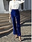 Mulheres Perna larga Elegante Moda Roupa de rua Comprimento total Cintura Alta Tecido Corte alto Confortável Macio Micro-Elástica Formal Rua Preto Vinho Azul Verde Primavera Outono Inverno Normal