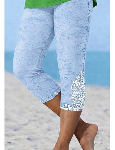 Mulheres Calças Capri Leggings Férias Moda Havaiana Capris Cintura Média Floral Gráfico Estampado Imprimir Conforto Macio Respirável Com Stretch Casual Diário Férias Azul Verão Primavera Fino