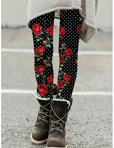 Mulheres Calças Leggings Leggings aconchegantes Férias Vintage Roupa de rua Mimolet Natural Floral Gráfico Flor Cintura elástica Imprimir Térmico / Quente Confortável Com Stretch Diário Casa Férias