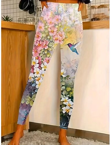 Mulheres Calças Leggings Leggings aconchegantes Roupa de rua Casual Comprimento total Cintura Alta Floral Cintura elástica Imprimir Respirabilidade Confortável Com Stretch Férias Rua Roupa Diária
