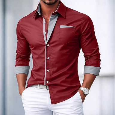Homens Saia camisa de botão Preto Branco Vinho Manga Longa Bloco de cor Colarinho Com Botões Primavera & Outono Casamento Diário Roupa camisas de colarinho