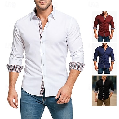 Homens Saia camisa de botão Bloco de cor O negócio Diário Marron Manga Longa Colarinho de Camisa Outono Primavera Verão Roupa Abotoar
