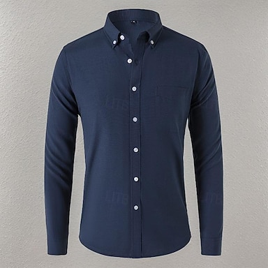 Homens Camisa Oxford Tecido Casual Ao ar livre Azul Claro Preto Branco Azul Marinha Manga Longa Colarinho Com Botões Verão Primavera Roupa Bolsos