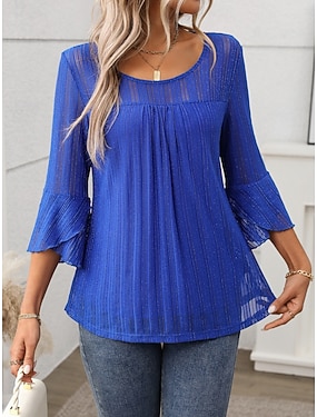 Mulheres Blusa Topo de ilhó Tops elegantes Ilhó Túnica Com Strass Tecido Elegante Vintage senhoras Manga Longa Gola Redonda Tops regulares Diário Trabalho Feriado Azul Preto Vinho Verde Tropa Roxo