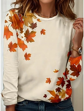 Mulheres Camiseta Imprimir Gráfico Plantas Vintage à moda Casual Manga Longa Gola Redonda Tops regulares Diário Azul Amarelo Cáqui Primavera Outono Inverno