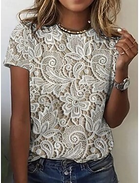 Mulheres Camiseta Imprimir Gráfico Estampado Cashemere Plantas Elegante Casual Manga Curta Gola Redonda Decote Redondo Tops regulares Diário Preto Branco Cáqui Verão