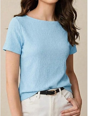 Mulheres Camiseta Textura T-shirt Côr Sólida Elegante Moda Casual Manga Curta Gola Redonda Tops regulares Casual Diário Para Noite Azul Rosa Vinho Café Verão Primavera