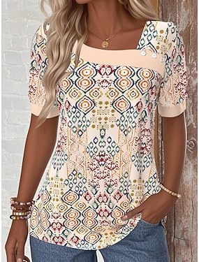 Mulheres Camiseta Patchwork Botões Imprimir Floral Gráfico Vintage à moda Clássico Manga Longa Decote Quadrado Tops longos Diário Final de semana Azul Vermelho Roxo Verde Primavera Outono Inverno