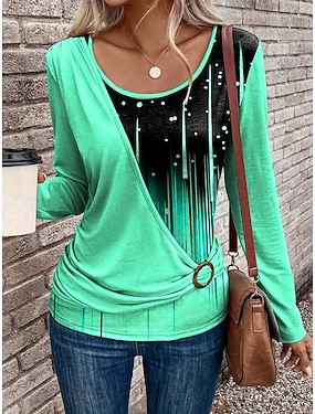 Mulheres Camiseta Patchwork Imprimir Gráfico Geométrica Gradiente Vintage à moda Moderno Manga Longa Gola Redonda Tops regulares Diário Azul Rosa Roxo Verde Primavera Outono Inverno