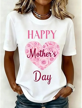 Dia das Mães Mulheres Camiseta Imprimir Gráfico Animal Letra Vintage à moda Clássico Manga Curta Gola Redonda Tops regulares Diário Final de semana Branco Verão Primavera