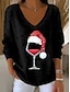 Mulheres Suéter Pulôver Moda Roupa de rua Casual Gráfico Taça de vinho de natal Decote V Superdimensionado Tricotado Manga Longa Tops regulares Tricotar Ao ar livre Diário Preto Primavera Outono