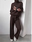 Mulheres Moda Roupa de rua Diário Conjuntos de calças Manga Longa Gola Alta Côr Sólida Casual Diário Preto Branco Cáqui Primavera Ajuste Largo