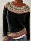 Mulheres Suéter de Natal Fair Isle Suéter Suéter Fair Isle Moda Roupa de rua Floral Gola Redonda Tricotado Imprimir Manga Longa Tops regulares Tricotar Diário Para Noite Final de semana Preto Amarelo