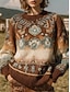 Mulheres Suéter Pulôver Diário Casual Floral Gráfico Estriado Gola Redonda Floral Tricotado Imprimir Manga Longa Tops regulares Tricotar Ao ar livre Final de semana Marron Outono Inverno