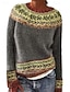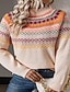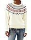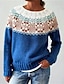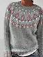 Mulheres Suéter de Natal Fair Isle Suéter Pulôver Moda Roupa de rua Casual Floral Geométrica Gola Redonda Tricotado Imprimir Manga Longa Tops regulares Tricotar Diário Feriado Para Noite Branco Rosa