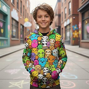 Para Meninos 3D Gráfico Desenho Animado Moletom Manga Longa Primavera Outono Moda Roupa de rua Infantil 4-12 anos Com Capuz Ao ar livre Casual Diário Normal