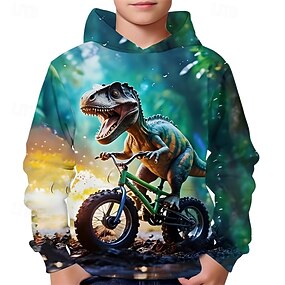 Para Meninos 3D Gráfico Dinossauro Moletom Pullover Manga Longa Impressão 3D Primavera Outono Esportes Moda Roupa de rua Infantil 4-12 anos Com Capuz Ao ar livre Casual Diário Normal