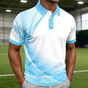 Homens Geométrico Linha Camisas Polo Esportivas Manga Curta Camisas polo Camisas de colarinho Casual Roupa Esportiva Roupa Diária Impressão 3D Botões Primavera Verão Azul Rosa Roxo