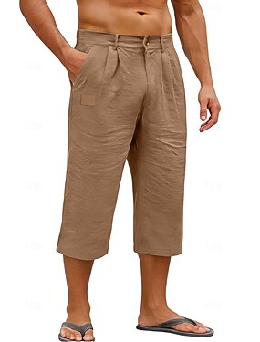 Homens Calças de linho Calças Capri Calça verão Bolsos Cintura elástica Tecido Conforto Respirável Comprimento da panturrilha Diário Ao ar livre Feriado Moda Estilo Clássico Azul ダークカーキ Micro-Elástica