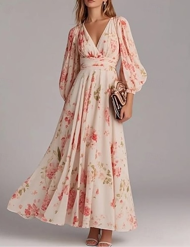 Mulheres Vestido maxi longo Vestido Longo Vestido de chiffon Vestido floral Vestido estampado Elegante Moderno Ao ar livre Férias Para Noite Normal Floral Sem Manga Decote V Rosa Verão Primavera