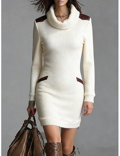 Mulheres Vestido Suéte Vestido da bainha Vestido de turno Moda Moderno Diário Ao ar livre Férias Delgado Bloco de cor Manga Longa Gola Alta Bege Outono Inverno