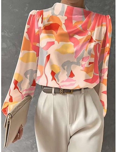 Mulheres Camisa Social Elegant Elegante Top de cetim Tecido Diário Negócio Maduro Manga Longa Gola Alta Tops regulares Trabalho Azul Preto Branco Vermelho Primavera & Outono