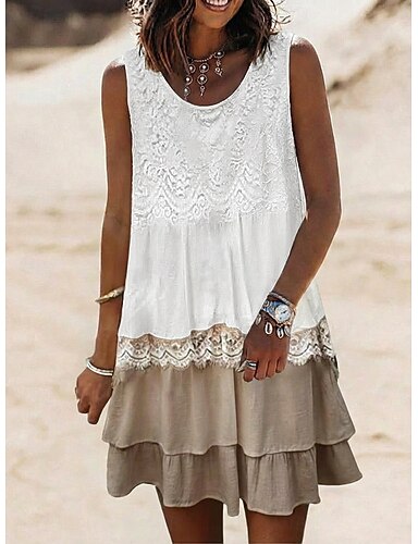Mulheres Minivestido Vestido de renda Vestido branco Vestido casual Vestido de verão Elegante Moda Praia Férias Feriado Normal Tecido Sem Manga Gola Redonda Branco Verão Primavera