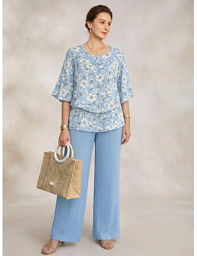 Mulheres Conjuntos de calças Meia Manga Borboleta Decote Redondo Floral Gráfico Elegante Férias Casual Diário Férias Azul Rosa Roxo Primavera Verão