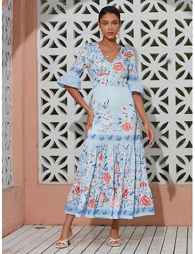 Elegante & Luxuoso Frente em V Clássico Etnico e Inter-racial Roupa de Praia à moda Contemporâneo Moderno Vestidos Calças Tradicional / Clássico Básico Férias Casamento Vintage Festa Trabalho Casual Formal Estilo Praia Tropical Lazer Sem Aro Romântico Boêmia Doce Moda Moderno Casual Diário Estilo bonito Boho Roupa de rua Elegante padrão Vestido senhoras Linha A vestido de férias Diário Floral / flor Maduro Solto Vestido elegante ajuste limpo Estampado Evasê férias na praia Estilo de moda simples Moda e sexy dentromore