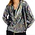 Anos 70 Anos 80 Metálico Brilhante Camisa Hippie Discoteca Paetês Fantasia Homens Fantasia de Carnaval Dia Das Bruxas Carnaval Ano Novo Festa Bandagem Parada do Orgulho Adulto Camisa