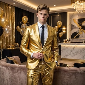 Retro Vintage Anos 80 Metálico Brilhante Smoking Ternos / Conjuntos e Blazeres Discoteca Paetês Corte Justo Fantasia Homens Fantasia de Carnaval Natal Dia Das Bruxas Carnaval Parada do Orgulho Mês do
