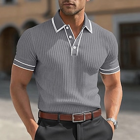 Homens Textura camisa muscular Trabalho Casual gola pólo com nervuras Clássico Manga Curta Básico Moderno Bloco de cor Riscas Tricotado Estriado Primavera Verão Fino Azul Branco Verde Cinzento Textura