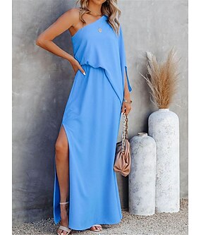 Mulheres Vestido casual Vestido Longo Fenda Férias Roupa de rua Maxi Assimétrico Manga 3/4 Preto Vermelho Azul Cor