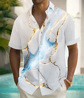 Homens Geométrica Mármore Arte abstrata Camisa Social camisa de verão camisa de botão Manga Curta Moda Casual Streetwear Férias Feriado Verão Aberto para a Lateral Impressão 3D Um bolso frontal